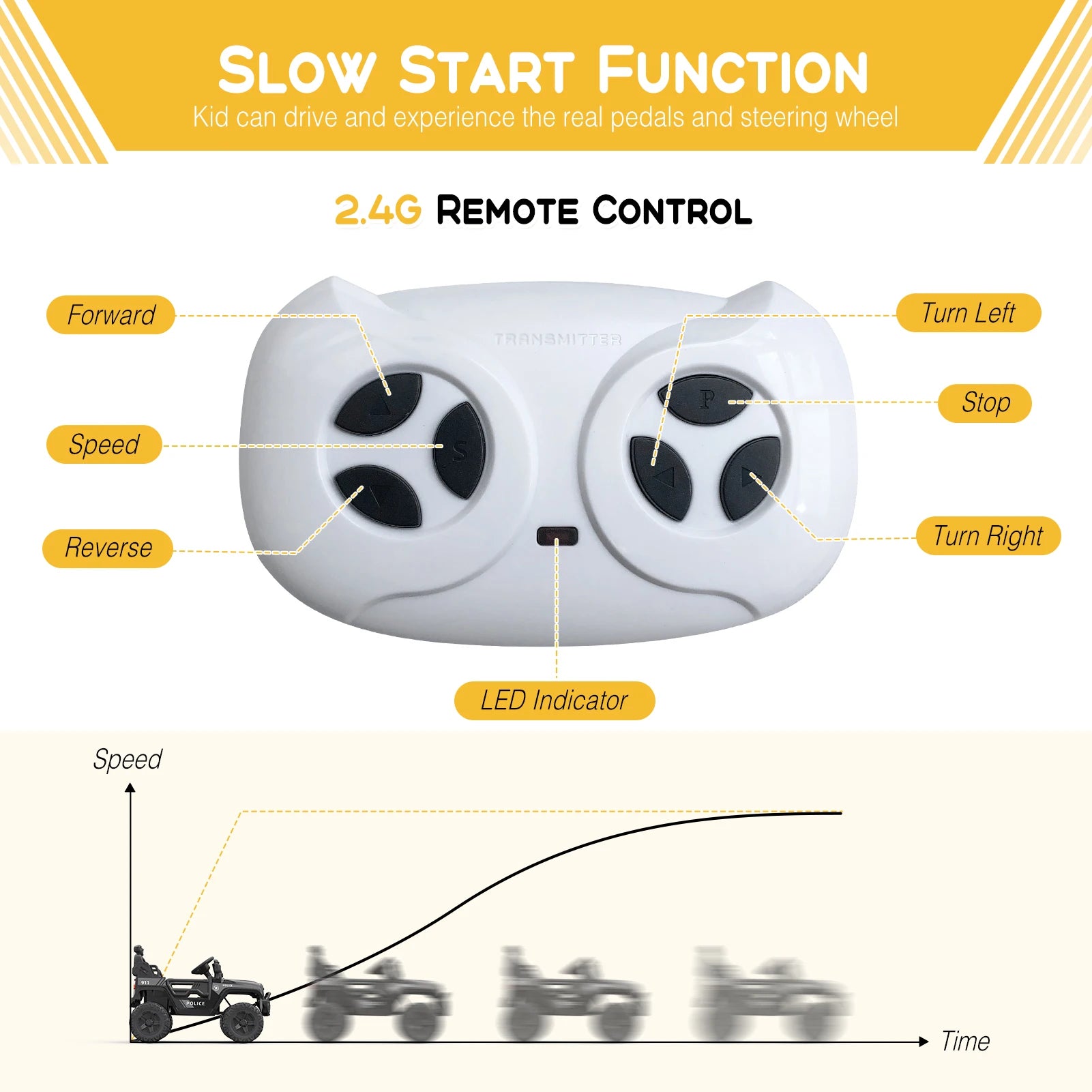 2.4G Parent Remote Control – Parents can guide or override for extra safety.