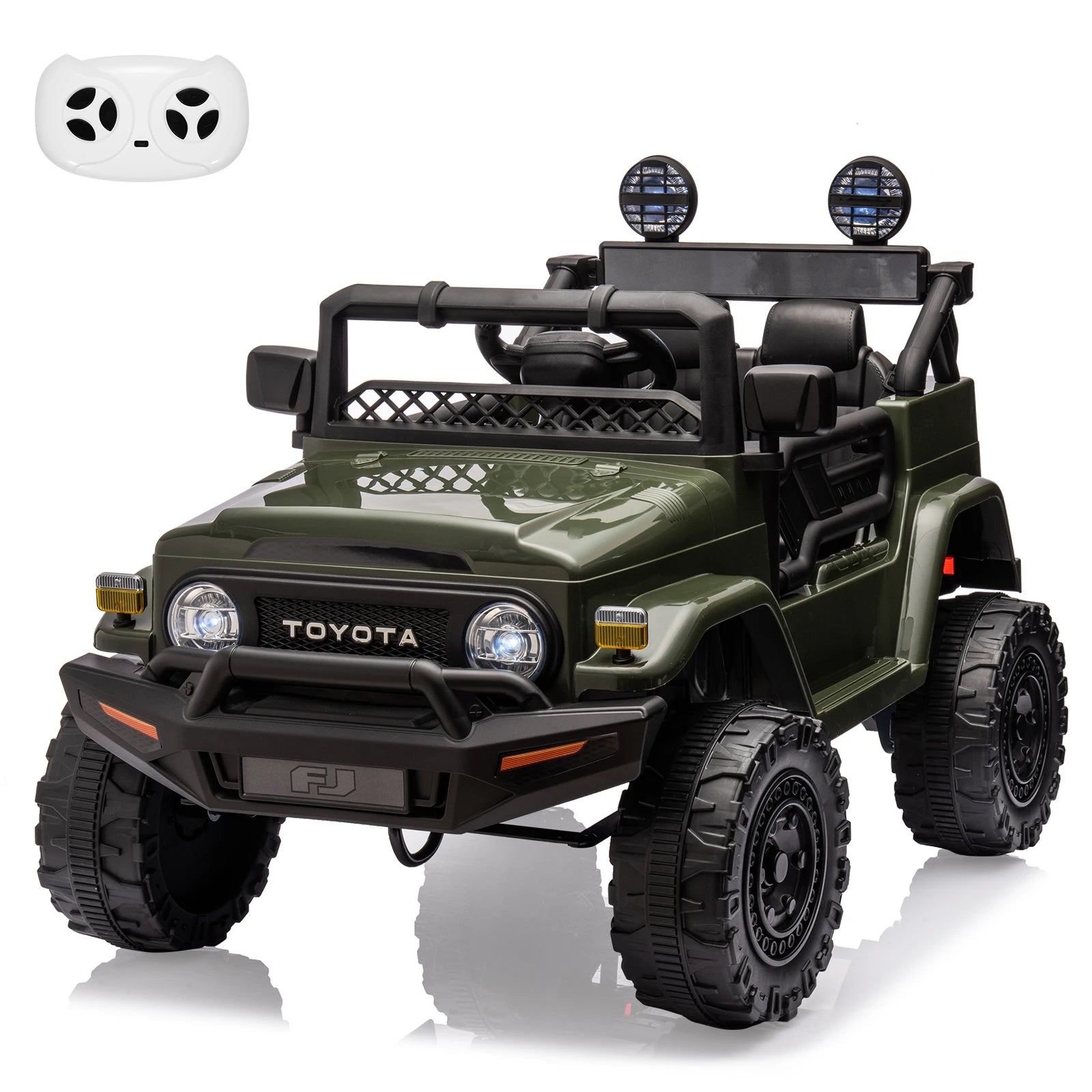 🚗 Toyota 12V electric ride-on truck with remote, LED lights, MP3 player & 3-speed control. Realistic design & certified safety for kids ages 3–8!